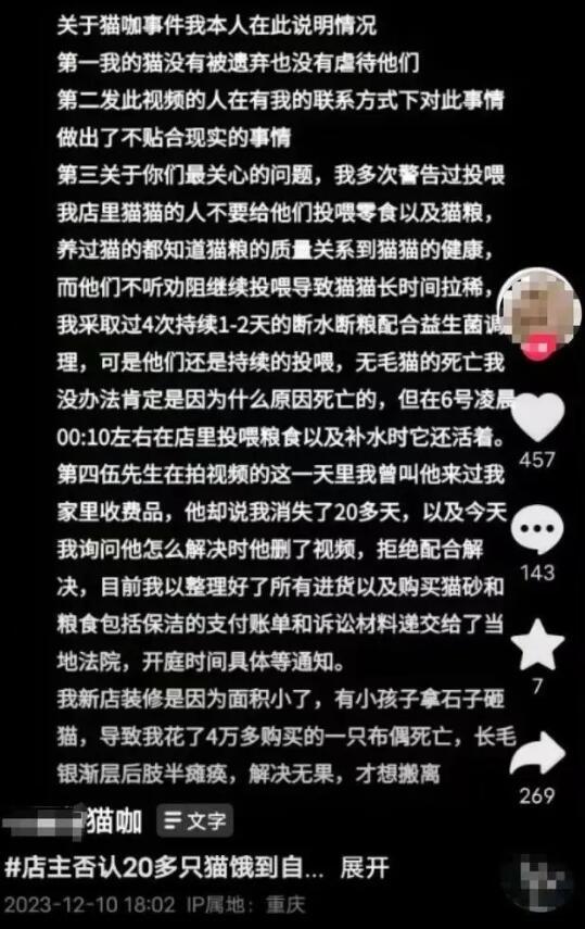 12月10日,该猫咖店相干者在其个东说念主应付账号上发布情况阐发,对关连网神话法给以恢复。