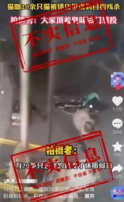 “20余只猫被锁店里饿到自相残杀”“雄厚的就吃了体质弱的”……近日,某网罗平台上,一则视频信息激勉网友宥恕。据重庆辟谣官微12月11日音信,经关连部门核实重庆时时彩彩票网,该信息为乌有信息。